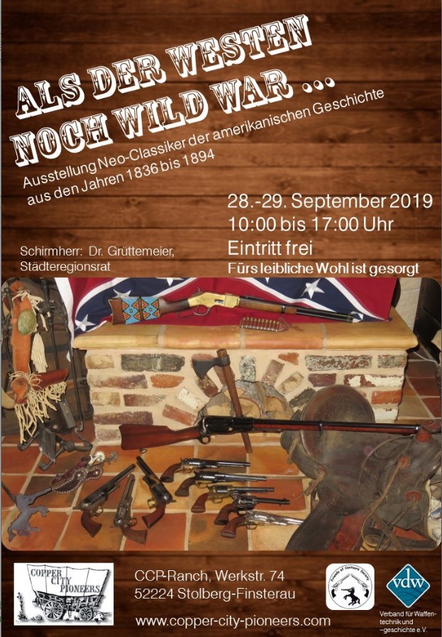 Stolberg – what and where the heck is it? It is a middle-size town. You will find it in the boondocks to the west of Cologne in the vicinity of the city of Aachen. The area is cornering with Belgium and the Netherlands. Sometime during the year 2019 two of our FROCS, cowboy action shooters and Neo-Classikers collectors, aliases of Alaska Wolf and Cheyenne Wolf, put their heads together in the clubhouse of the Copper City Pioneers (CCPs check https:/www.copper-city-pioneers.com), situated in a wooden area in the outskirts of Stolberg.