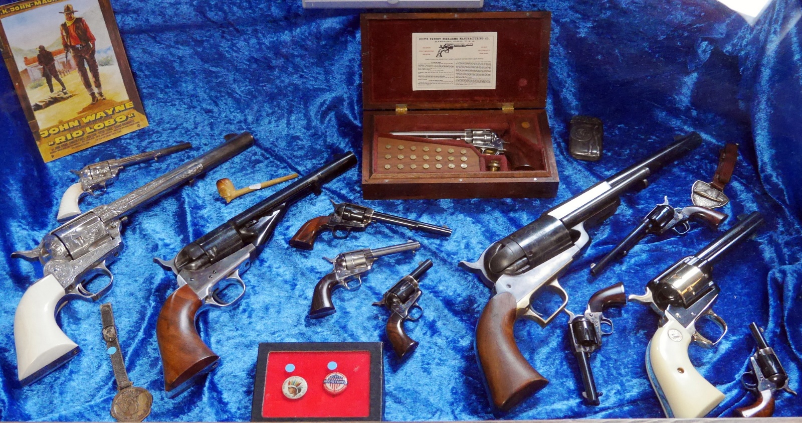 Miniature guns featured in 2020 – see center Single Action Armys compared to their full-sized Neo-Classikers