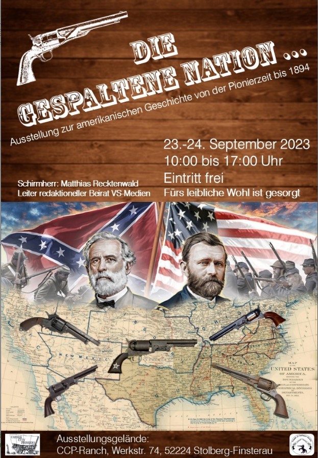 But after Corona and the flooding worse came to worst. During this last weekend in September of 2023 the visitors very much appreciated the Two Wolfs probably most exciting exhibition in Stolberg. That is the good news. But these visitors were a few disappointing handfuls only. No regional collectors or shooters, nobody from Belgium or the Netherlands. Most visitors were members of the FROCS. They came to the ranch even from faraway locations in Germany. Hence, no lectures were offered. The final count and interviews with visitors present indicated this kind of exhibition is without a future at the CCPs ranch. Therefore, the decision was taken that this third event at the ranch was to be the last one.