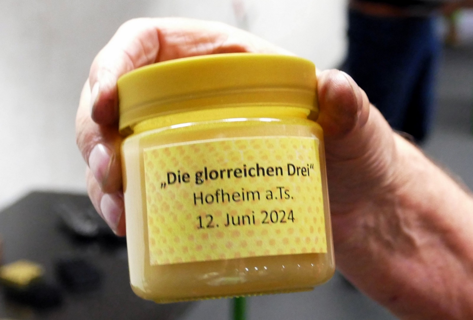 Present from a local beekeeper for the three patrons: One pot of honey for each of them