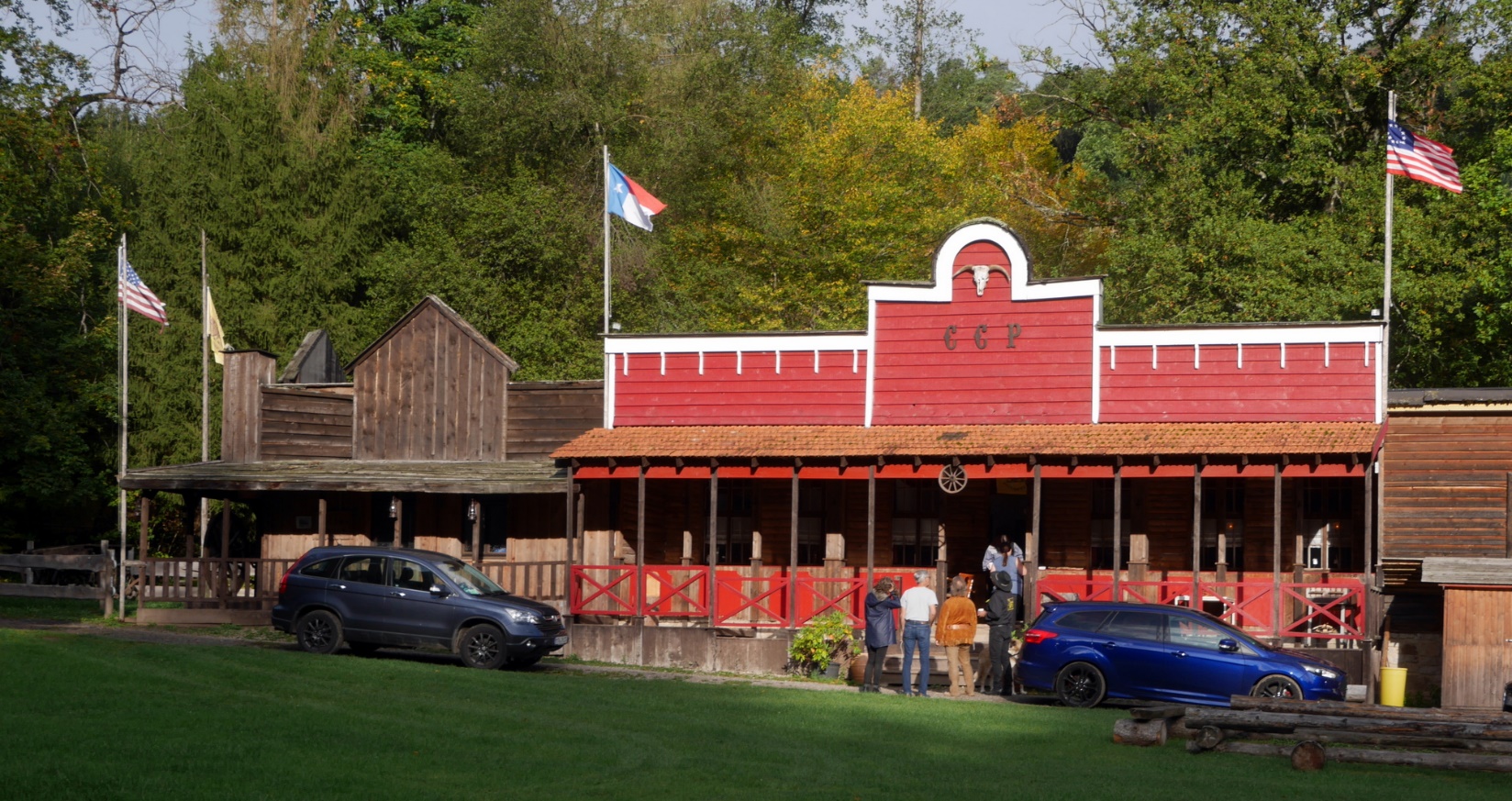 The CCPs are a country and western line dance group. They erected this comfortable wooden complex in the middle of nowhere almost on the banks of one of the tributaries of river Erft by the name of Vichtbach. To reach the club compound you have to cross a wooden bridge over the Vichtbach. To the clubhouse there belongs a cozy pub with kitchen attached, a few bedrooms but more importantly to us, a huge squarish multi-purpose hall with lots of windows for the dance training activities. Alaska Wolf happens to be on the board of the CCPs.